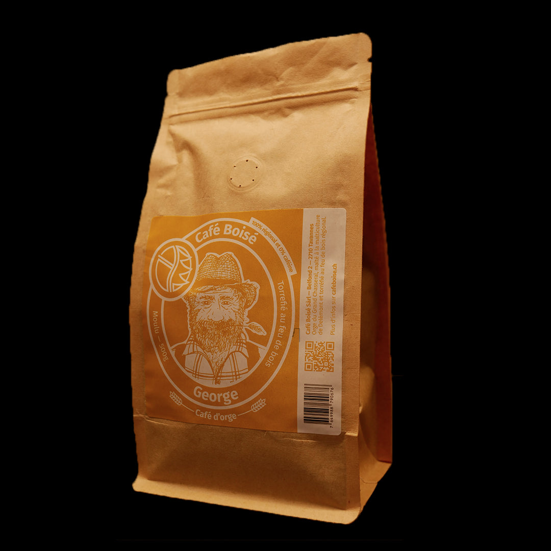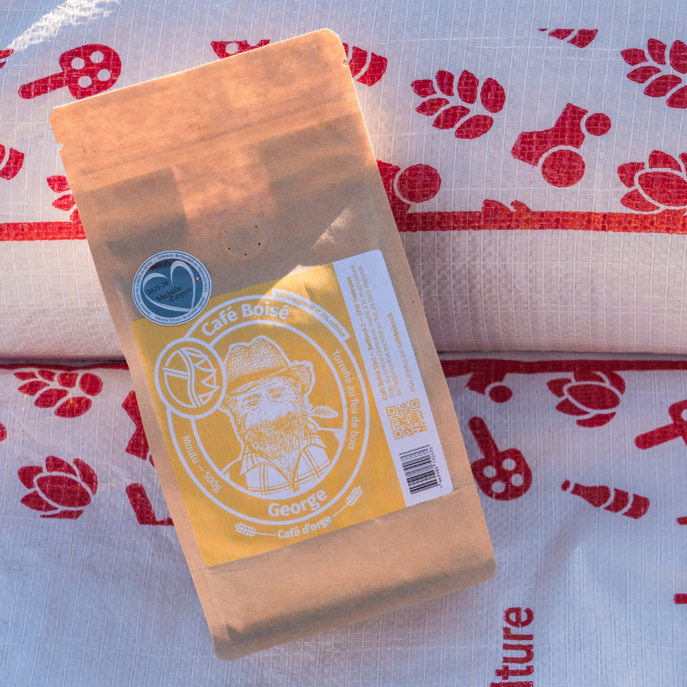 GeOrge c’est la nouvelle variante au café déca de café boisé — une boisson torréfiée à base d’orge, cultivée tout près de cez nous, à Orvin.